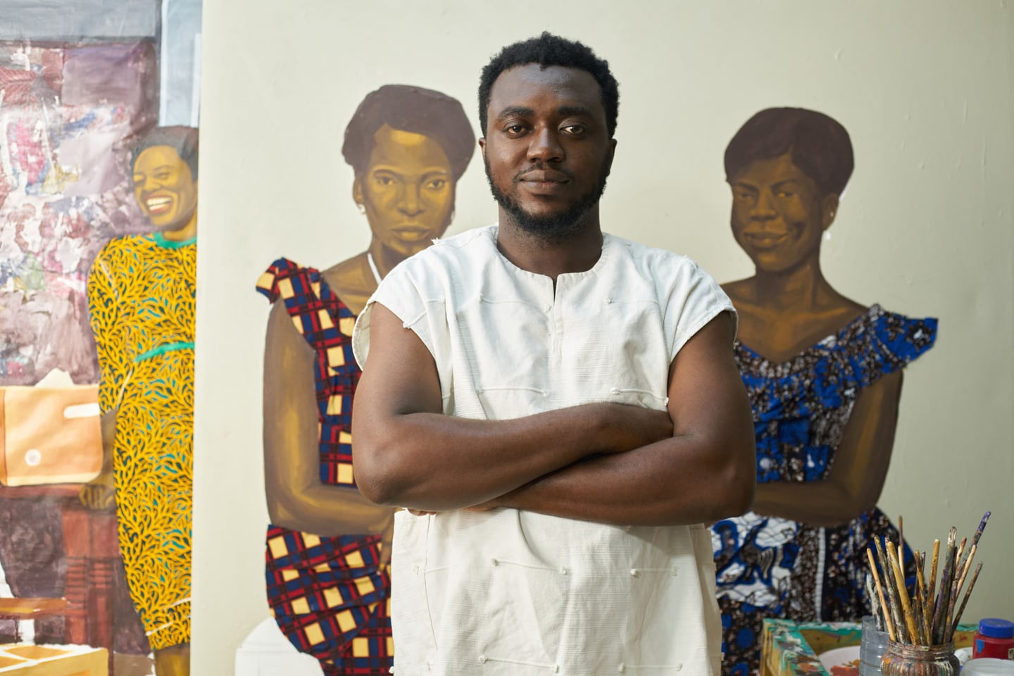 Cornelius Annor is a Ghanaian artist celebrated for his dynamic paintings that often incorporate elements of African culture and contemporary themes. His work has been exhibited in various galleries and art spaces, where he seeks to engage viewers with the rich narratives embedded in his art. Annor's practice is characterized by a vibrant color palette and intricate patterns that reflect his cultural background.