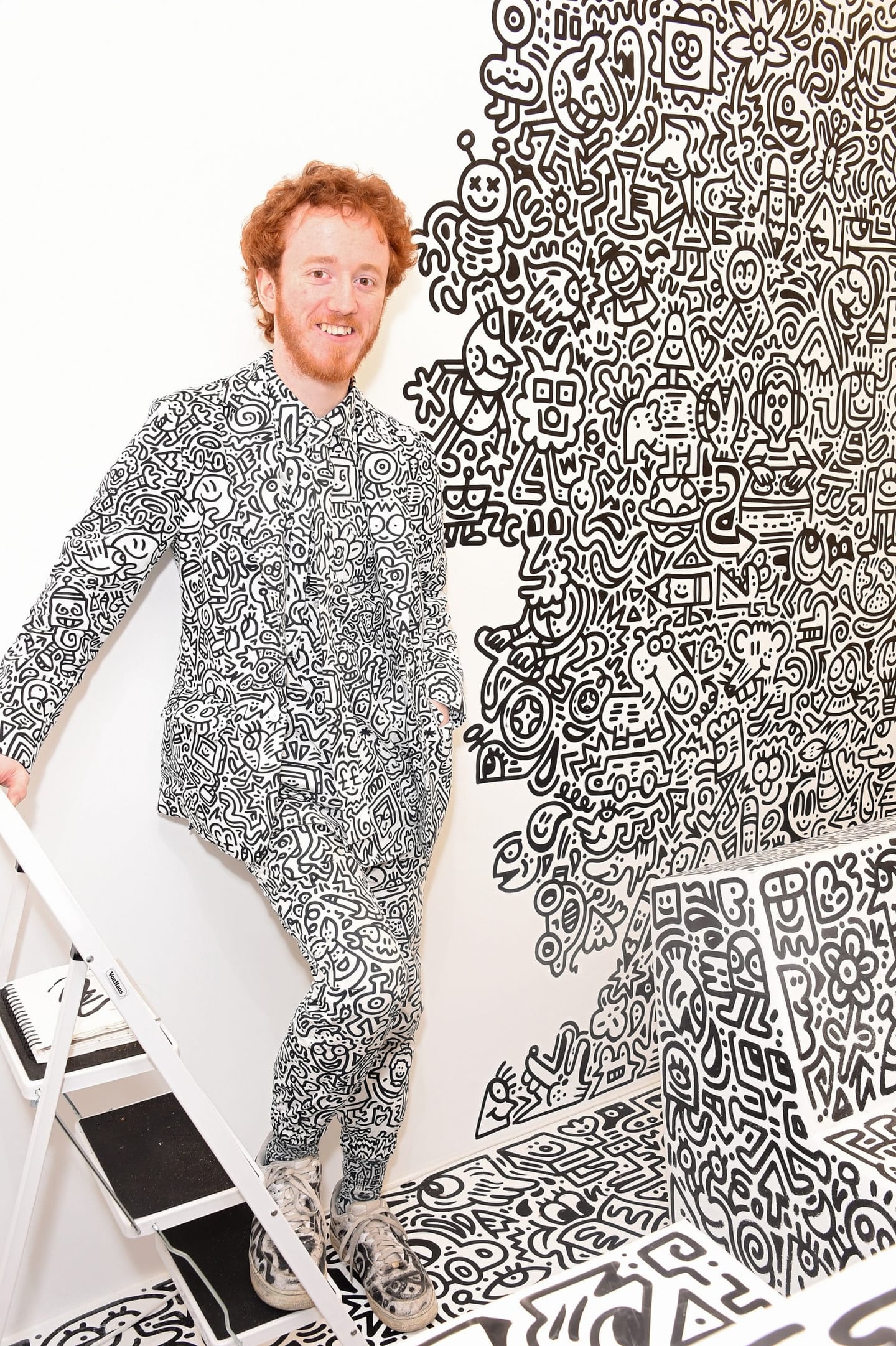 Mr Doodle is a British artist known for his distinctive doodle art style, which features intricate line drawings and playful characters. His work often transforms everyday objects and spaces into vibrant, animated environments. Mr Doodle has gained a significant following on social media and has exhibited his work in various galleries around the world, making a name for himself in the contemporary art scene.